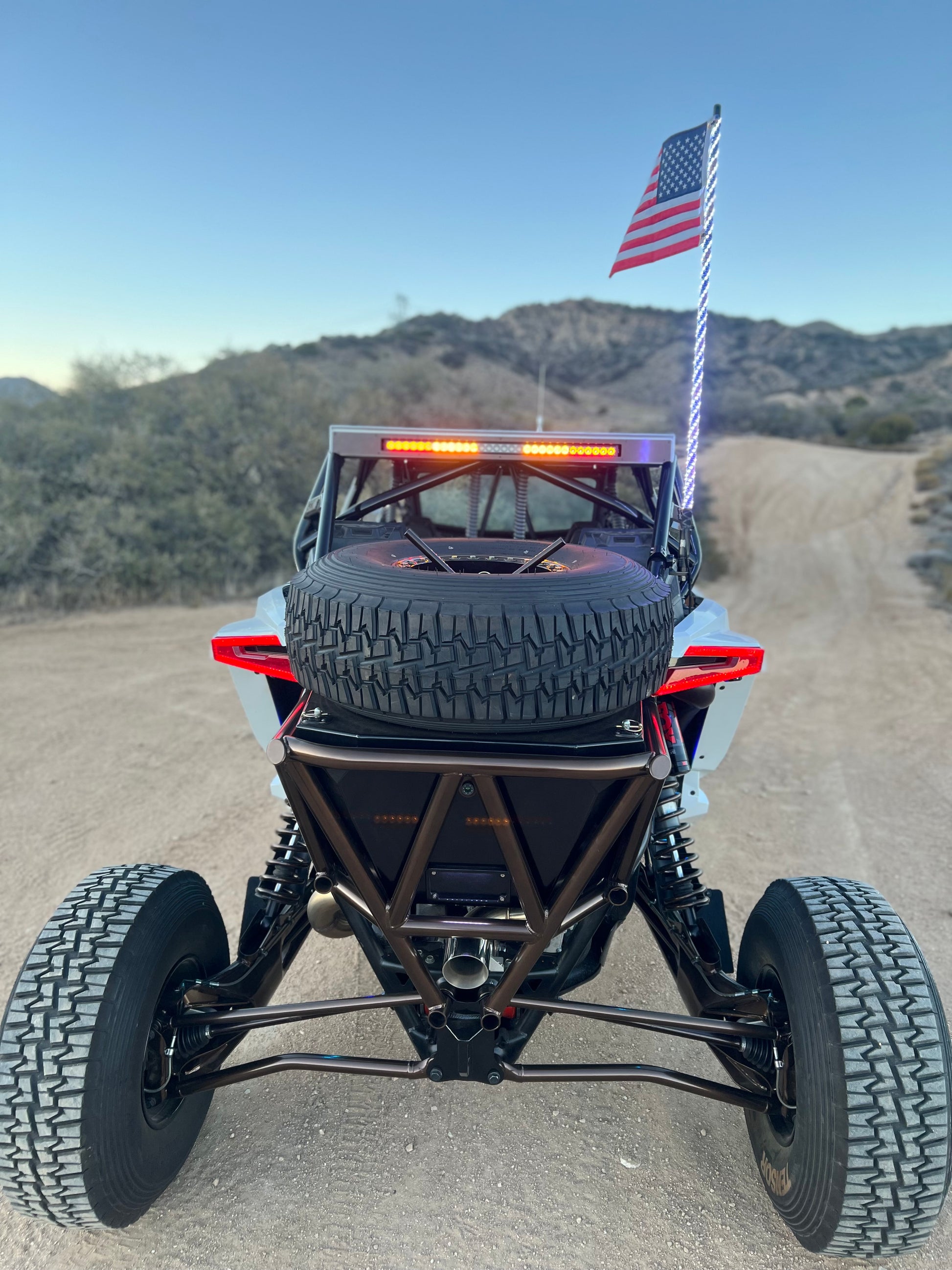 ***Requires custom fabrication for installation, trunk plastics must be trimmed, bungs welded to aftermarket or stock cage C-pillar, custom exhaust from header back, taillights must be custom fit into the upper fenders to fit a 35in spare***